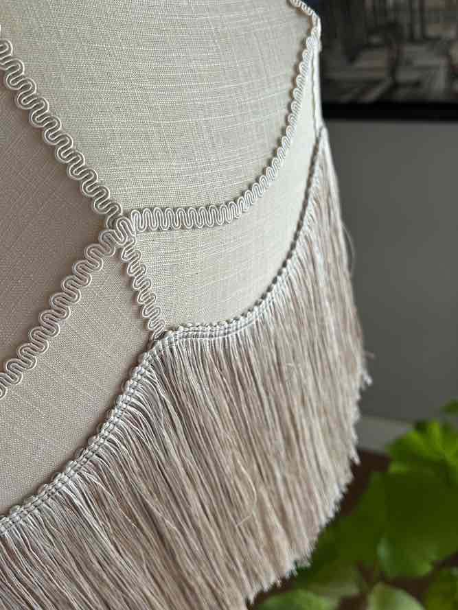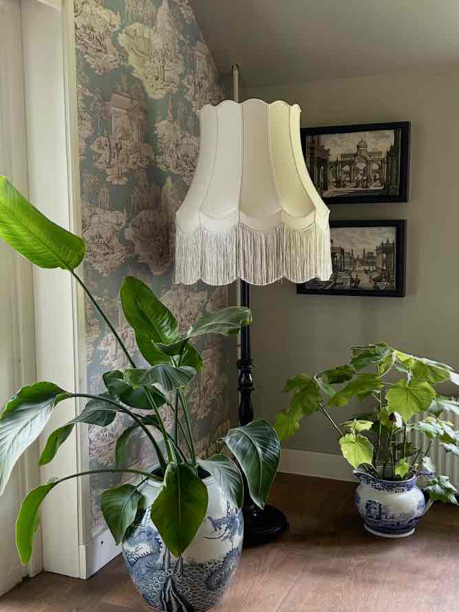 Deze lampenvoet — al meer dan 60 jaar oud — kreeg een nieuwe, handgenaaide lampenkap die de voet omtovert tot een ware eyecatcher!