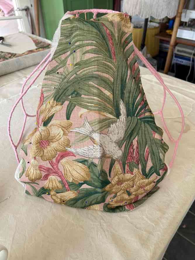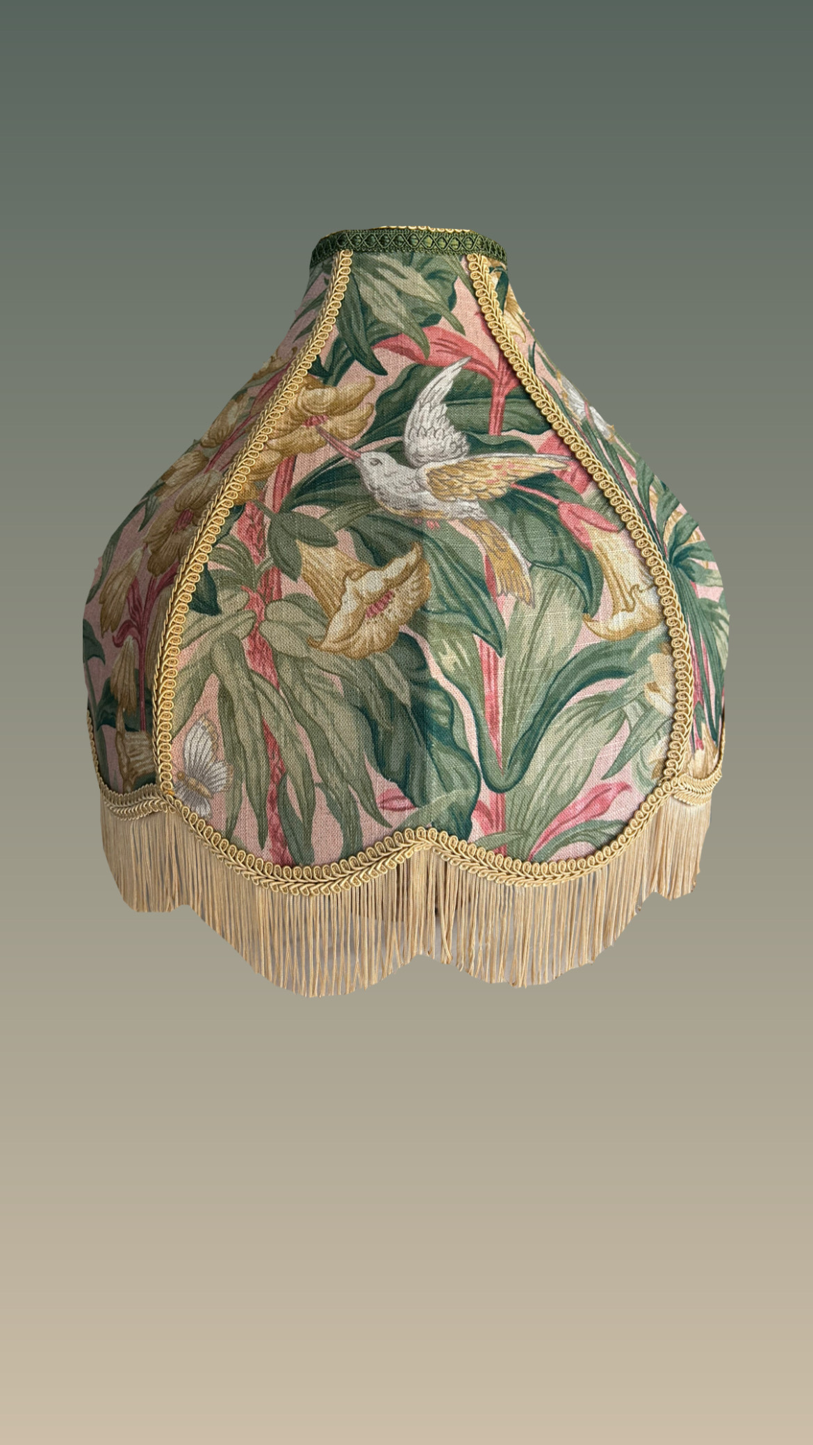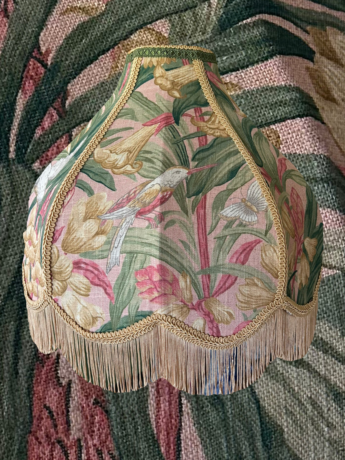 Deze prachtige hand-genaaide ‘one-of-one’ hanglamp is een absolute sfeerbepaler in jouw interieur! Zoals de foto’s laten zien is de lamp paneel voor paneel tot stand gekomen. De stof is van GP&JBaker ‘Trumpet Flowers’.